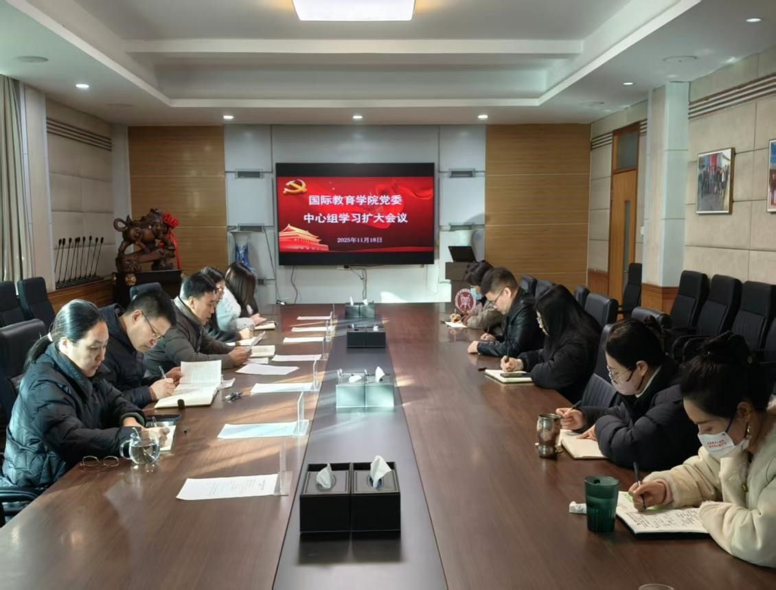 会议首先集中学习了《中国共产党第二十届中央委员会第四次全体会议公报》,深刻领会全会的全局性、战略性意义。会议指出,党的二十届四中全会明确了“十五五”时期是基本实现社会主义现代化的关键承启阶段,审议通过的规划建议为高等教育国际化发展提供了根本遵循,其中“扩大高水平对外开放”“建设教育强国”“发展新质生产力”等核心部署,与国际教育的使命定位高度契合,为学院破解发展难题、优化育人格局指明了前进方向。
