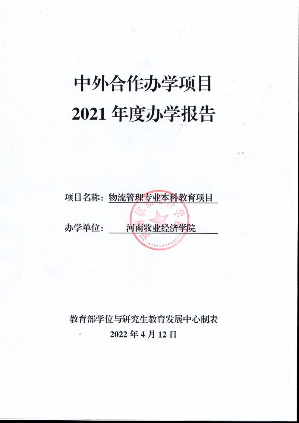 根据教育部国际合作与交流司《关于提交2016-2017年度中外合作办学报告的通知》(教外司办学〔2017〕447号)文件精神、教育部中外合作办学年度报告系统相关要求,现从办学基本情况、学生培养、师资建设、教学组织、项目管理、财务状况、教学质量监控、社会评价和办学特色等九个方面,对我校物流管理专业本科教育项目2021年度办学情况进行自评。