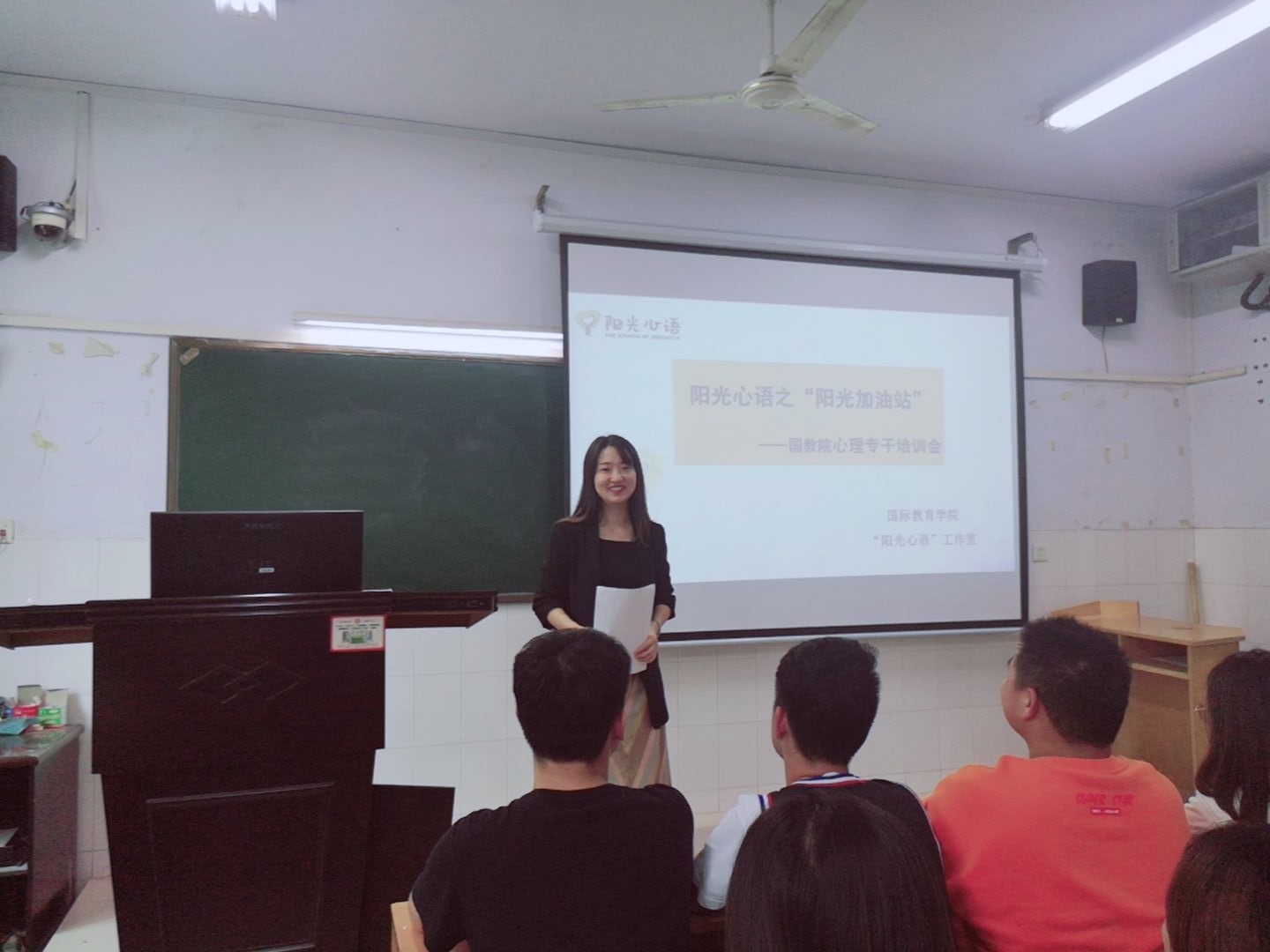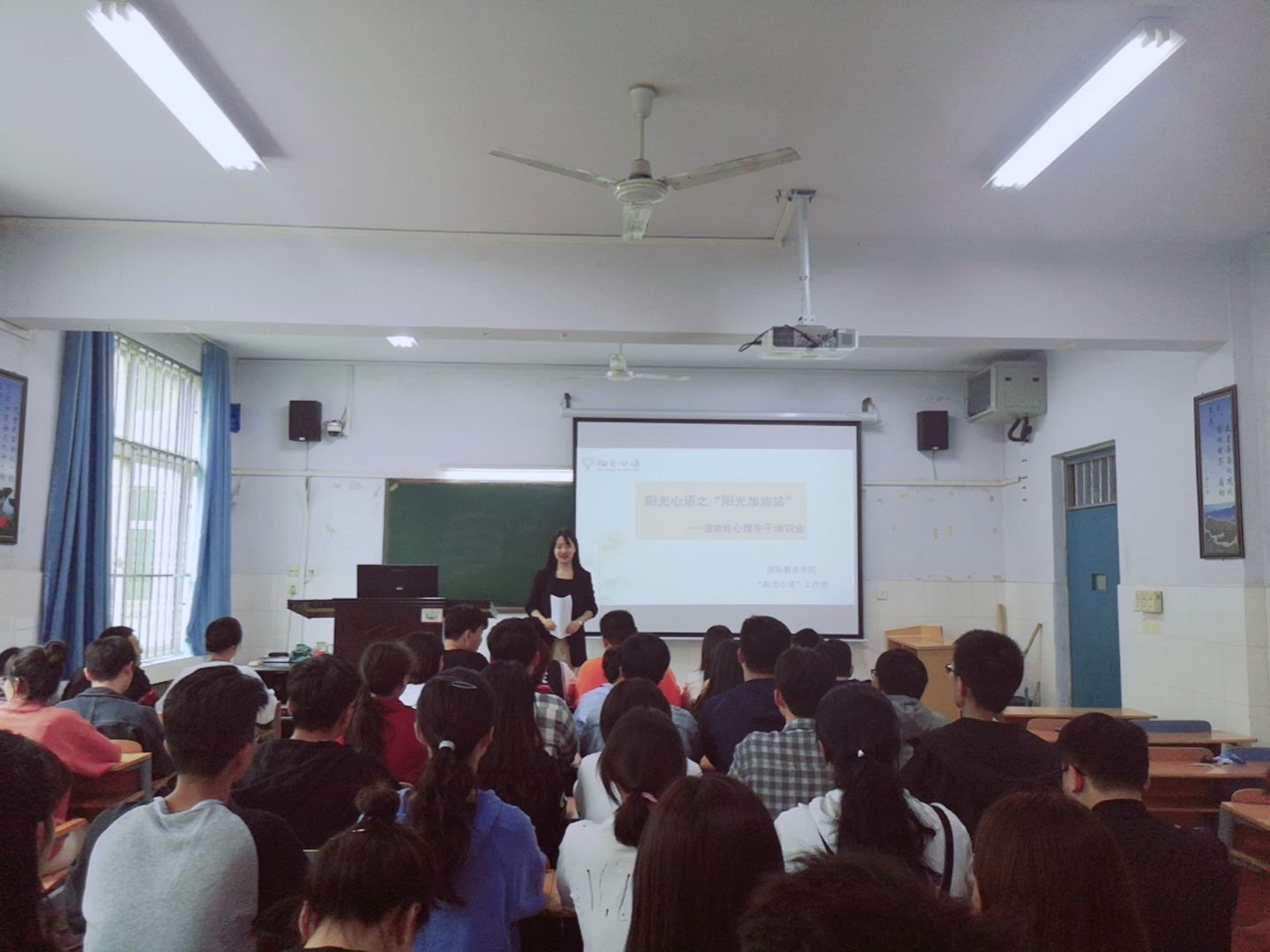 为进一步排查出学生心理问题,太阳成集团tyc33455于2019年9月19日下午一点半在A207教室开展了--阳光心语之“阳光加油站”心理培训课程,本次会议由心理专干丁玮老师主讲,19级代班长和各班班委参加。