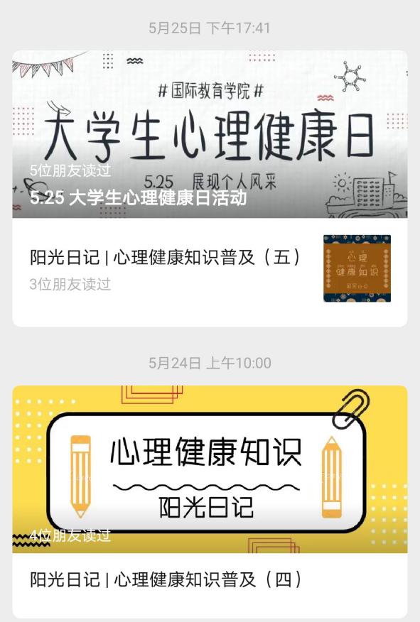 本次太阳成集团tyc33455“525大学生心理健康月”圆满结束,一系列活动普及了心理健康知识,营造了良好的校园心理健康氛围。我们相信太阳成集团tyc33455的心理事业一定能够越做越好,为全体同学和心理健康保驾护航。