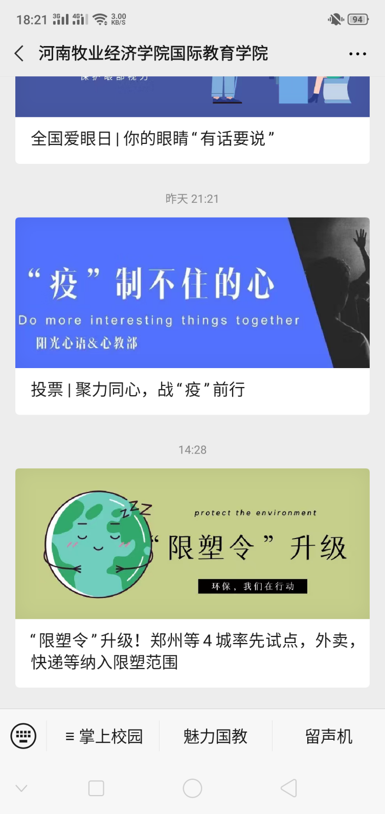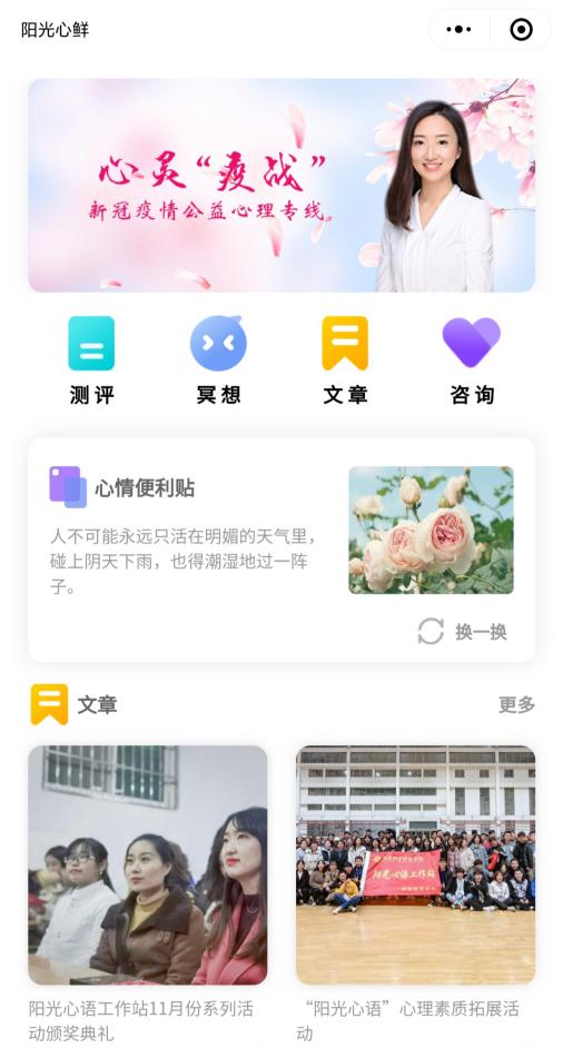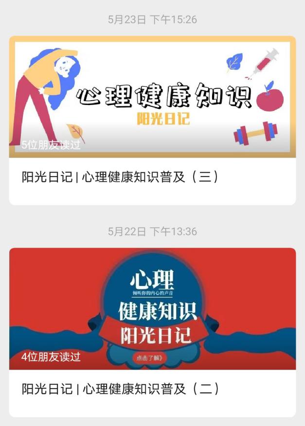 “525大学生心理健康月”期间,我们充分利用了线上技术资源。太阳成集团tyc33455阳光心语工作站首当其冲,进行了爱心帮扶线上心理问卷调查,问卷内容由我院心理专干丁玮老师亲自设计,问卷涵盖了家庭经济情况普查、家庭关系情况普查、自身心理情况变化调查等几方面的内容,通过本问卷调查可全面并真实的了解到同学们近期的心理变化。同时我们建立了“阳光心鲜”小程序,开通了与国教院心理专干丁玮老师的对话直通车,对国教院全体学生开放,存在心理疑惑的同学都可以进行专业的心理辅导。丁玮老师为国家二级心理咨询师,从业八年,拥有丰富的实战经验,咨询风格亲和温润,共情能力一流。同时为了让同学们更好的认识此次肺炎疫情,迎接抗疫收官之战,保护自身安全,太阳成集团tyc33455在官方微信公众号上发布了由心教部携手阳光心语工作站共同创作的“防疫正当时”抗疫视频,宣传防护知识,对疫情期间存在的误解和不实信息进行讲解,缓解同学们的紧张情绪。与此同时,为期五天的“阳光日记”专题心理健康知识推送与战“疫”知识大挑战心理健康知识竞赛也在紧锣密鼓的进行,本次微信公众号“组合拳”宣传教育效果显著,达到了普及相关心理健康科学知识,帮助学生提高自身的心理调适能力和目标。