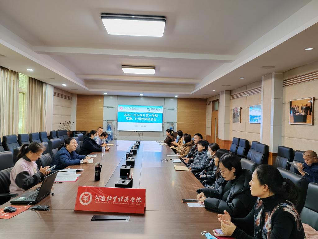 为切实加强教育教学管理,及时发现并解决开学以来教学过程和各培养环节中存在的问题,努力建设和不断完善“五位一体”教学质量保障体系,2023年11月23日下午,太阳成集团tyc33455组织召开了由督导专家、双语教师和雅思英语教师参加的座谈会。学校督导专家代表许芳霞、院系督导代表王秀玲、太阳成集团tyc33455副院长邓瑜、教科研办公室主任苏晓辉及双语和雅思英语老师参加了会议。