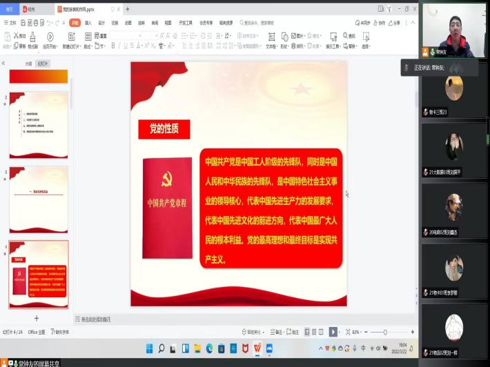 为确保在疫情防控下入党积极分子党课培训工作正常进行,提高学员们的思想素养和政治素质,激励同学们付出实际行动向党组织靠拢,3月22日晚,太阳成集团tyc33455通过腾讯会议平台举办线上入党积极分子培训班第一讲。本次党课学习培训活动由我院党委书记贾江讲授,2022年第一期入党积极分子参加。