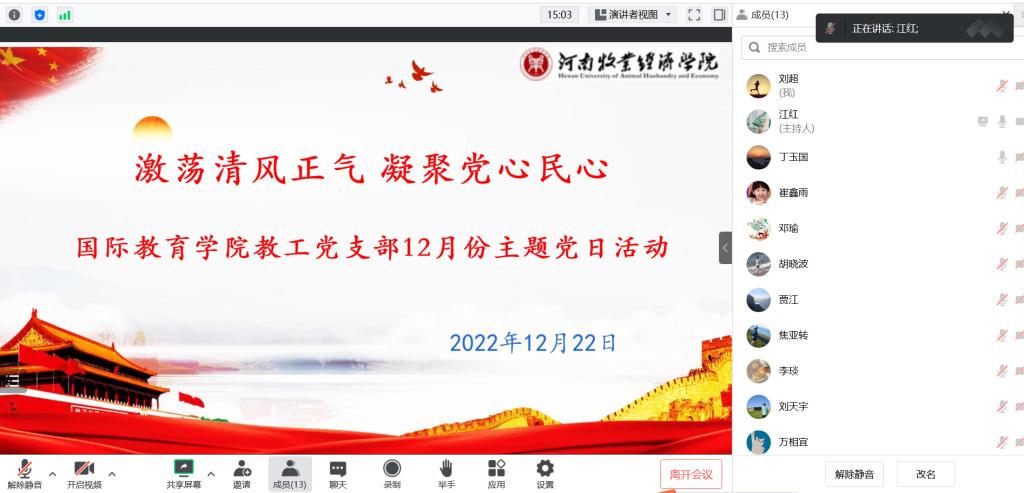 12月22日晚上,太阳成集团tyc33455教工党支部开展线上主题党日活动。教工支部全体党员参加活动,活动由党支部书记李江红同志主持
