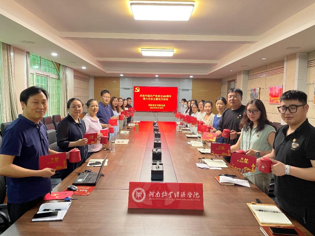 会上,院长胡晓波代表院党委为全体教工党员发放了“政治生日”贺卡和刻着每位教工党员名字的红色水杯。校级优秀党务工作者侯丁琳、优秀共产党员滑斌进行了发言,分享了党建工作经验和入党以来的心路历程。全体与会党员在院党政办主任刘超的领誓下重温了入党誓词,进一步坚定了理想信念,用铿锵有力的宣誓声,诠释了对党忠诚的决心。