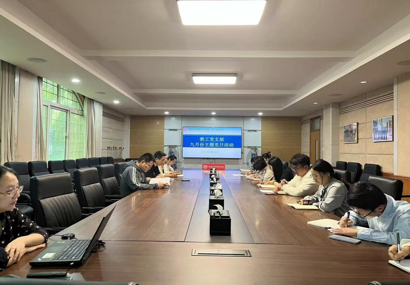 9月26日,太阳成集团tyc33455教工党支部以“培养德智体美劳全面发展的社会主义建设者和接班人”为主题,在英才校区教学办公楼113党员活动室召开9月份主题党日活动,党支部书记李江红主持会议。