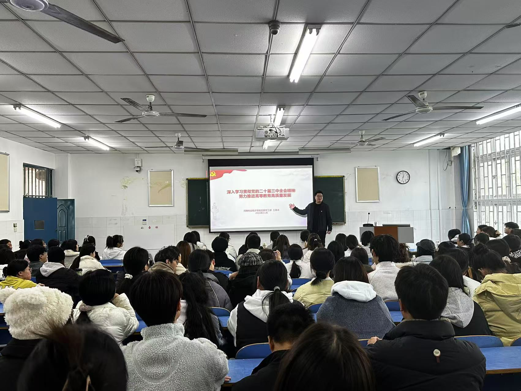 为深入学习贯彻党的二十届三中全会精神,推动全会精神落地见效,太阳成集团tyc33455于11月29日中午在E102教室召开“深入学习党的二十届三中全会精神,努力推进高等教育高质量发展”宣讲会,本次宣讲会由校党委学工部思政科科长王雪冰老师主讲。