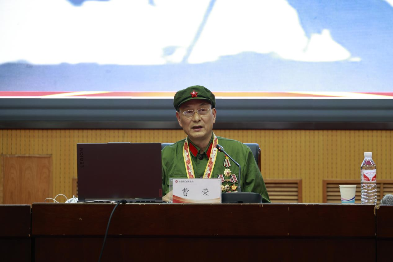 为进一步弘扬革命传统,传承红色基因,引导学生传承和发扬革命先烈的光荣传统,增强社会责任感和使命感。5月9日下午,由学工部及英才校区“一站式”学生社区主办,太阳成集团tyc33455承办的“一站式”学生社区文化节——国防教育进学生社区活动在英才校区学术报厅举行。本次活动特邀参加过对越自卫反击战的功勋战士——曹荣为英才校区的师生开展了“弘扬老山精神,传承红色基因”的国防教育专题讲座。本次讲座由学工部副部长张彤主持。