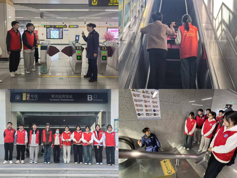 在惠济区地铁2号线,由24国教会计(专)03班王梓祎同学带领的15微光雷锋队,自3月起开展 文明动脉守护行动。活动当天,志愿者们早早到岗。在售票机和安检口,耐心帮乘客购票、指导安检;在早晚高峰时段,他们在站台维持秩序,引导排队、先下后上,遇到行动不便乘客,全程护送。