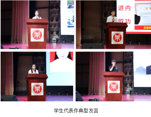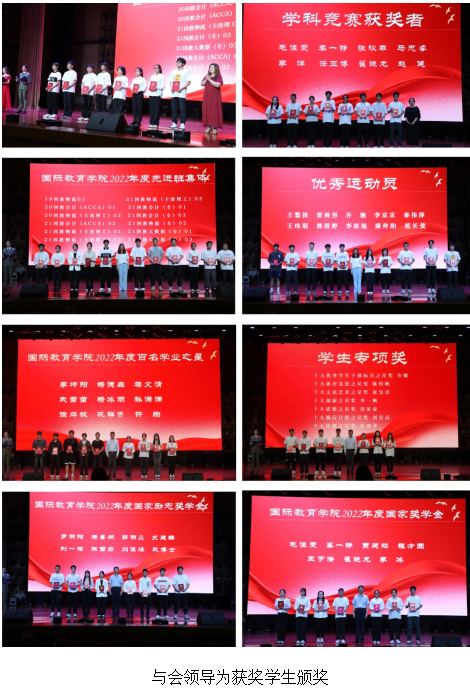 大会在乐器表演《最初的梦想》青春激昂的旋律中拉开了帷幕。学院领导班子成员为受表彰的文明班级、学科竞赛获奖者、先进班集体、优秀运动员、“百名学业之星”、“十大优秀学生标兵之星”等校级专项奖获得者、国家励志奖学金及国家奖学金获奖代表进行颁奖。这些先进集体和优秀学生是我院青年学生的榜样,他们不忘初心、励志笃行,激励着同学们在奋斗的道路上砥砺奋进、再创辉煌。铿锵有力的朗诵《青春 奋斗 梦想》,朝气蓬勃的舞蹈《生命之舞》,细腻而深情的歌曲《如愿》,充满希望和憧憬的合唱《夜空中最亮的星》,澎湃着青春的激情,昂扬着奋进和向往。先进班集体代表,来自21国教物流(卡罗理工)02的罗明阳,学科竞赛获奖代表,来自20国教物流(卡罗理工)02班的秦一铮,国家奖学金获奖代表,来自20国教会计(ACCA)01班的毛佳雯以及2023届优秀考研毕业生代表,来自19国教会计(ACCA)02班的陈新宇等四位优秀学生先后分享了自己在大学期间的思想认知、专业学习、工作生活、创新创业、社会实践、志愿服务等方面的经历及心得感悟,鼓励全院学生要坚守理想,要敢于有梦、勇于追梦、勤于圆梦。他们用生动感人的励志事迹,抒写了新时代青年学子的情怀和担当,彰显了国教院青春活力,在砥砺奋进的过程中不懈追求,也为全院学生树立了标杆和榜样。最后,团学会主席许曜作为领誓人,带领全体学生进行诚信考试宣誓,此环节让学生深受教育,学生们纷纷表示一定以诚实的态度、积极的行动参加考试,用真实的成绩为一学期的努力画上圆满的句号。