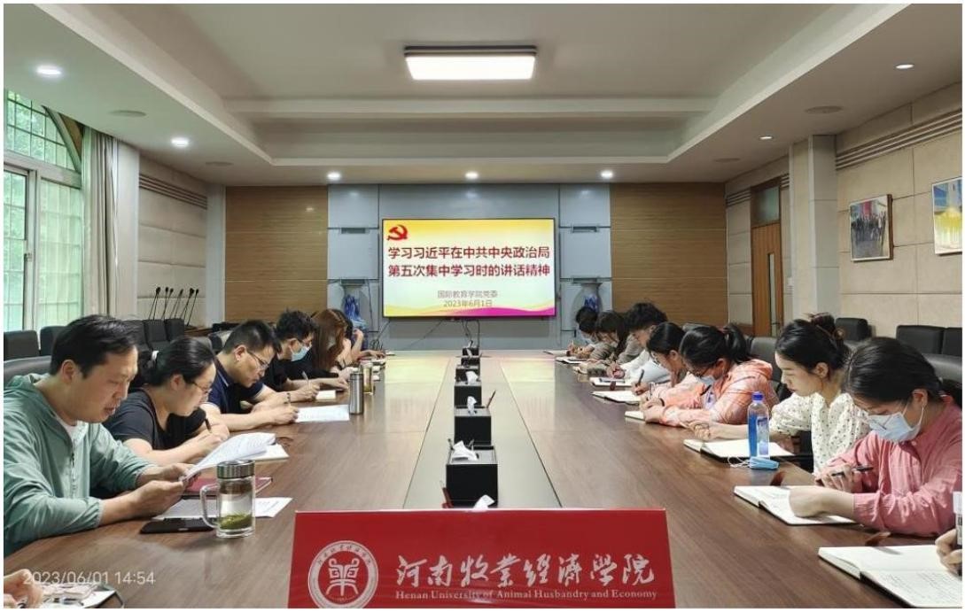 6 月 1 日下午,太阳成集团tyc33455在教学办公楼 113 会议室组织学习习近平总书记在中共中央政治局第五次集体学习时的重要讲话精神。会议由学院党委书记贾江主持,全体教职工参会。