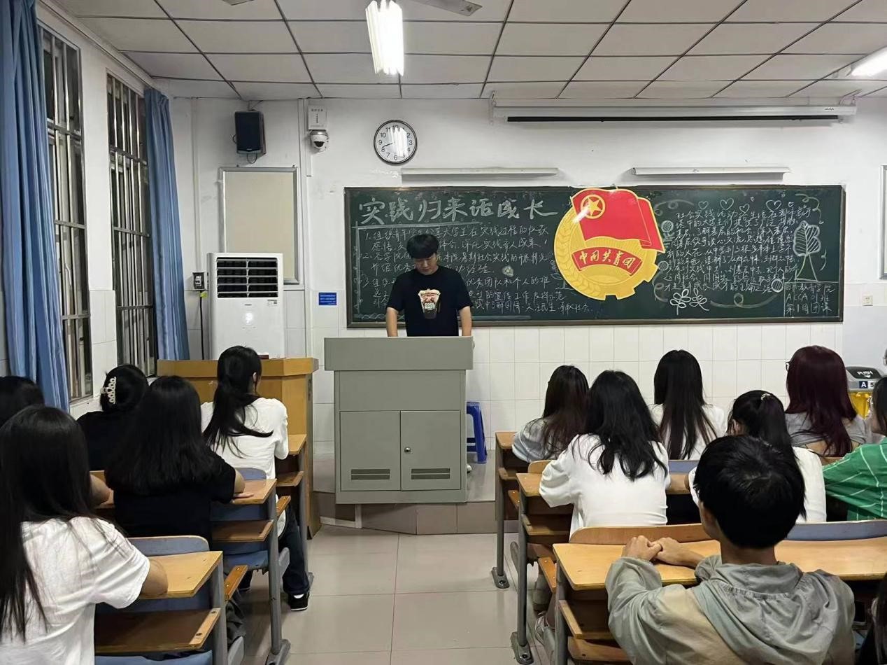 为总结暑期“三下乡”社会实践成果,进一步发挥先进典型示范引领作用,鼓励学生踊跃参与社会实践,深化活动影响,扩大育人实效,太阳成集团tyc33455于9月14日在教室开展了以“实践归来话实践”为主题的团课。