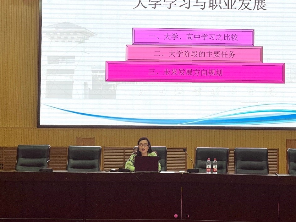 为使2023级新生尽快适应大学新生活,更好地规划个人学业及提高思想认识水平,太阳成集团tyc33455于10月18日在学术报告厅开展了学业发展规划教育专题讲座,该讲座由学院党委副书记李江红主讲,2023级新生参加了教育活动。