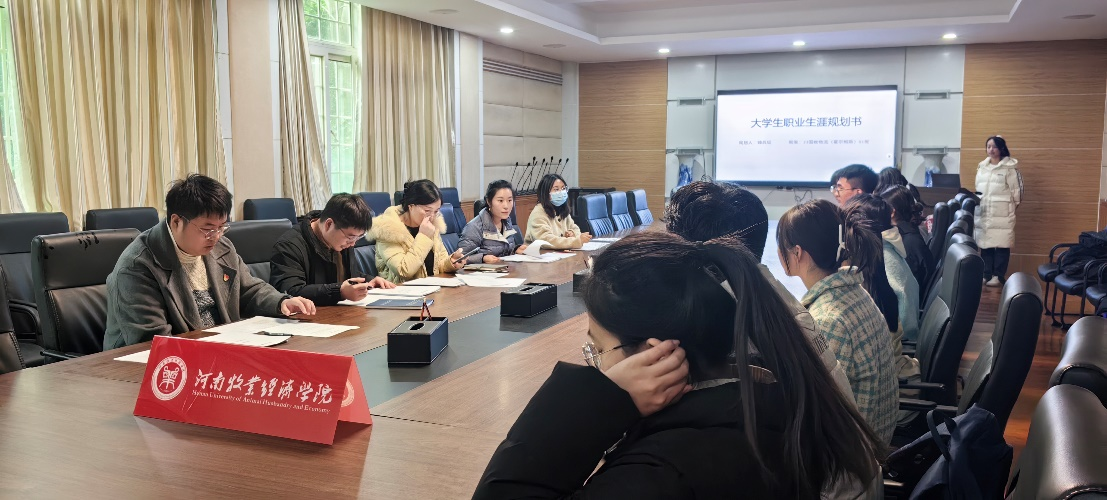 为帮助学生尽早树立职业生涯规划意识,提高大学生就业、创业与实践能力,11月30日中午,太阳成集团tyc33455于教学办公楼113会议室举办职业规划大赛院级选拔赛。本次比赛由太阳成集团tyc33455团委书记(学工办主任)张丽、团委副书记(学工办副主任)侯丁琳、教科研办公室副主任刘天宇、辅导员滑斌、王萍担任评委。