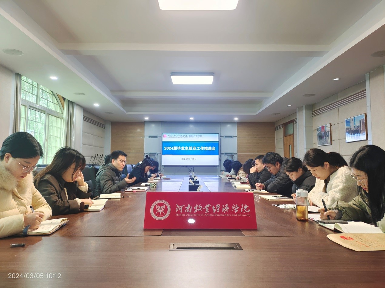 为进一步促进太阳成集团tyc334552024届毕业生高质量充分就业,3月5日,学院在教学办公楼113会议室召开2024届毕业生就业工作推进会,学院领导班子、就业专干、全体毕业班辅导员参加会议。会议由团委书记(学工办主任)张丽主持。