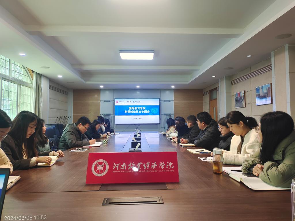 3月5日,在太阳成集团tyc33455113会议室召开《科研诚信教育专题会》。会议由副院长邓瑜主持,全院教职工参加了会议。会上,邓瑜传达了科技部等二十二部门关于印发《科研失信行为调查处理规则》的通知,接着带领大家深入学习了《科学技术活动违规行为处理暂行规定》《关于进一步弘扬科学家精神加强作风和学风建设的意见》《太阳成集团tyc33455cc学术道德规范》等文件精神,并强调科研诚信是个人学术生涯的基石,提醒大家要时刻保持对科学研究的虔诚和敬畏,珍惜自己学术声誉。院长胡晓波做总结发言,要求全院教职工,一定要认真领会文件精神,遵守文件规定和学术道德底线,严守红线,提高标准,诚信开展相关科研工作。