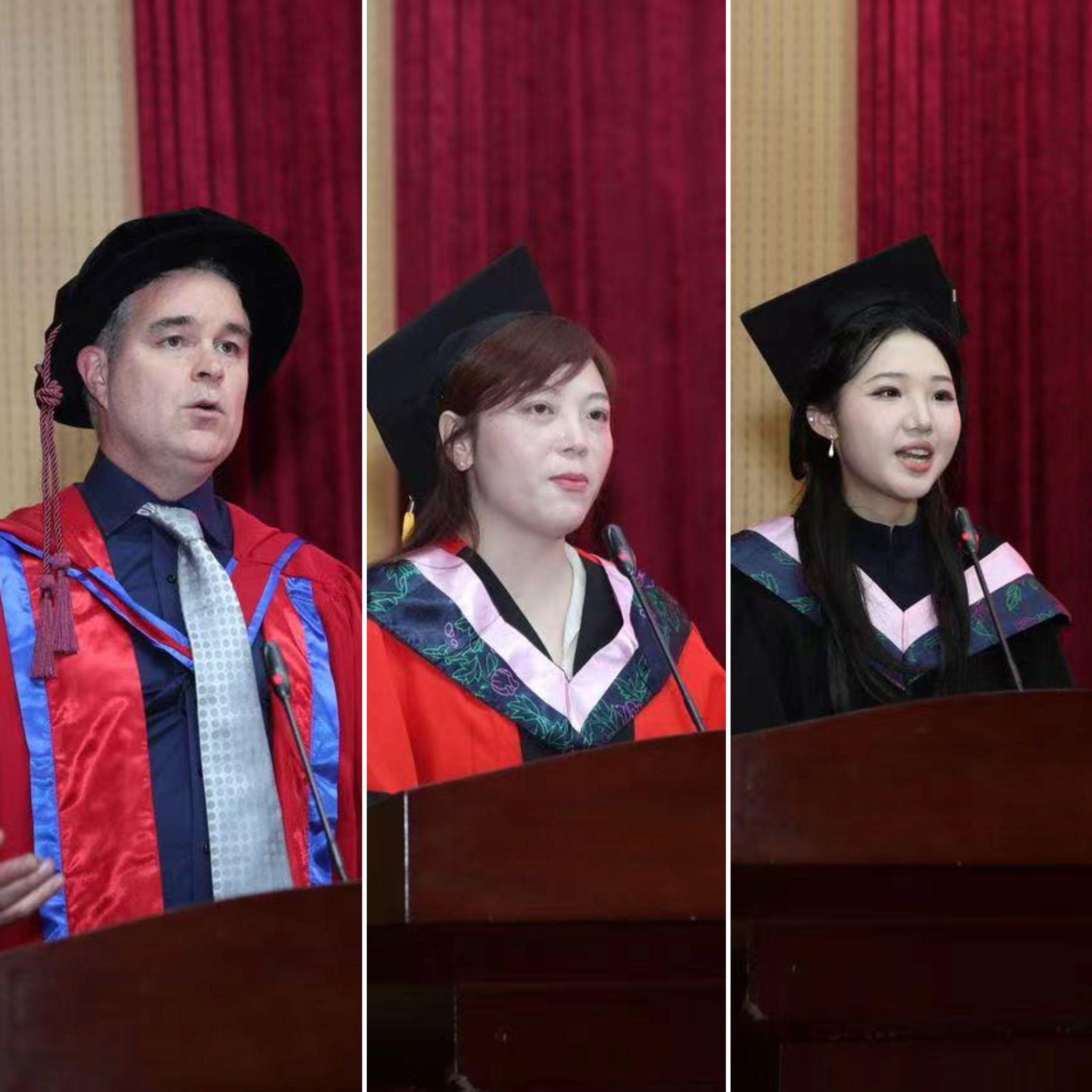 史蒂芬·纳格代表澳大利亚霍尔姆斯学院向毕业生们表示祝贺,希望大家胸怀世界,不断扩宽国际视野,积极参与国际交流,提升核心素养;脚踏实地,永远保持积极向上的心态,面对现实,勇于担当,奋力拼搏;敢闯敢创,充分发挥自我想象力、创造力,积极投身科技创新,在顶天立地的创新创业中成长成才,实现人生价值。