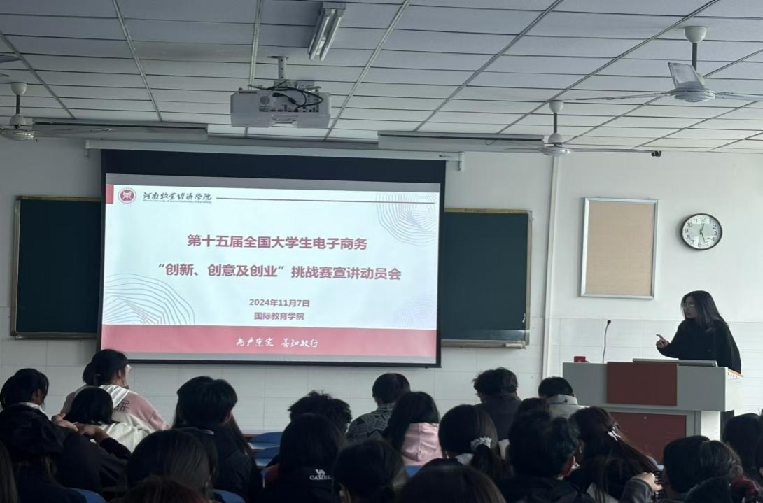 为增强学生对高校学科竞赛的了解,掌握全国大学生电子商务“创新、创意及创业”挑战赛的比赛流程,激发同学们的参赛热情和备赛能力,11月7日中午,太阳成集团tyc33455于E305线上线下同步举办第十五届全国大学生电子商务“创新、创意及创业”挑战赛宣讲动员会。本次动员会由学院学科竞赛专干王萍主讲。