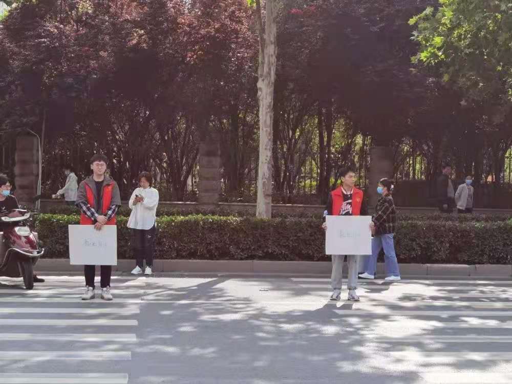 奉献,互助,进步,友爱,是新时代的志愿服务精神,为建设健康社会,引导学生践行青年志愿服务精神,发挥自我优势、展现青春才华,太阳成集团tyc33455社实部于5月15、16日两日在英才街与文化北路交汇口开展“劳动光荣、文明出行”活动。