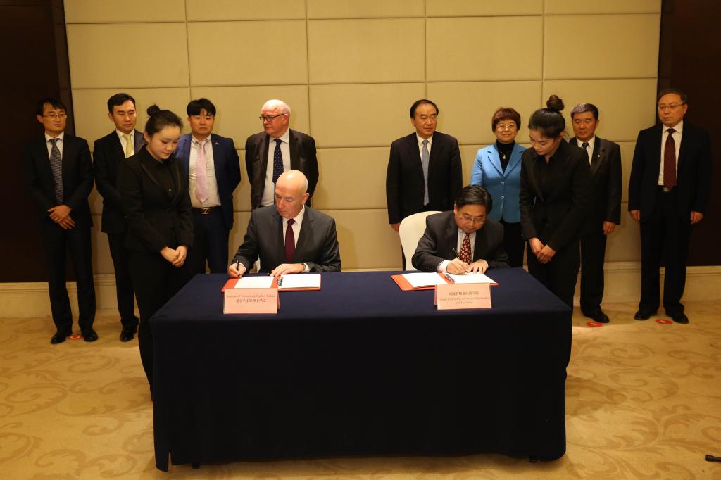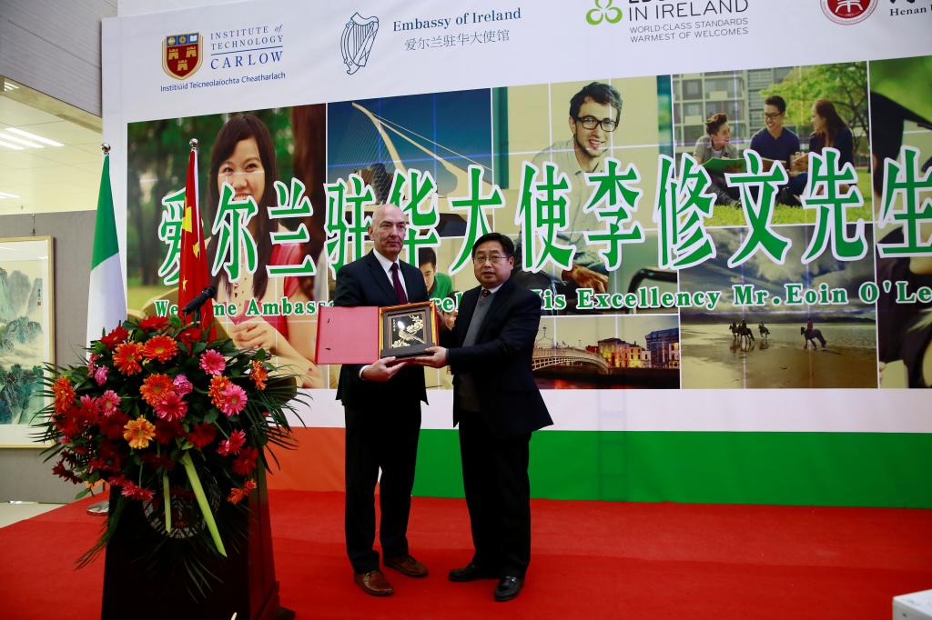11月21日,我校举行爱尔兰研究中心揭牌仪式暨我校与爱尔兰卡罗理工学院签约仪式,副省长徐济超、爱尔兰驻华大使李修文、爱尔兰卡罗理工学院副校长戴克澜•道尔,校领导穆瑞杰、罗士喜、张卫宪、许圣道等出席仪式。