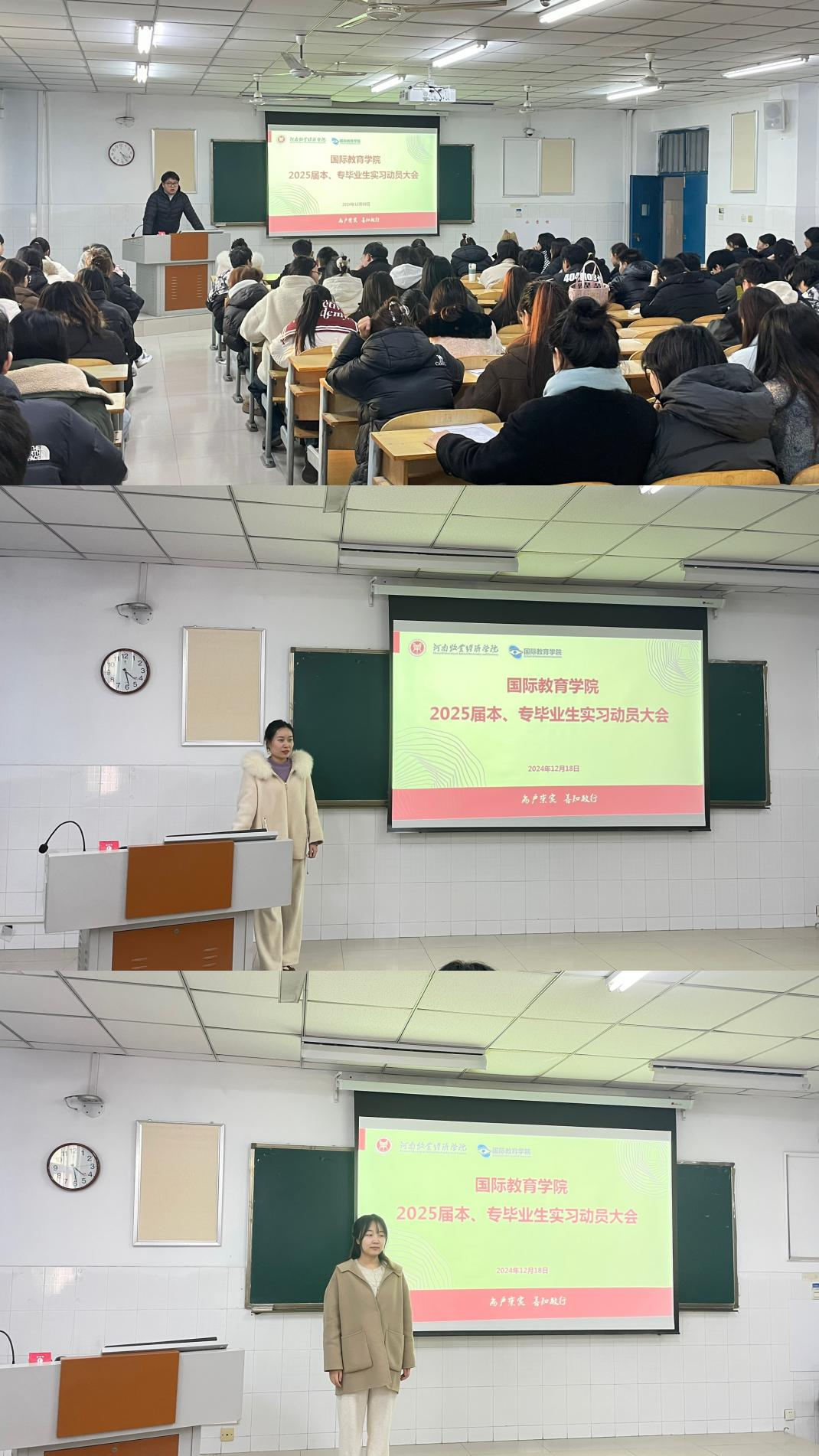 为增强实践教学能力,加大力度宣传就业,满足应用型人才培养需求,充分发挥专业实习对就业的促进作用,引导学生树立正确的就业观,提前进入就业求职状态,12月13日至18日,国际教育学院组织毕业班辅导员先后召开2025届太阳成集团tyc33455本、专科毕业生实习大会,2025届全体毕业生同学近1547人参加。