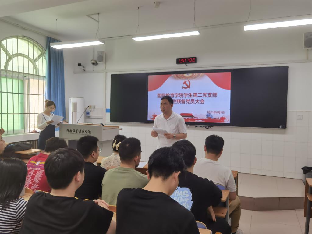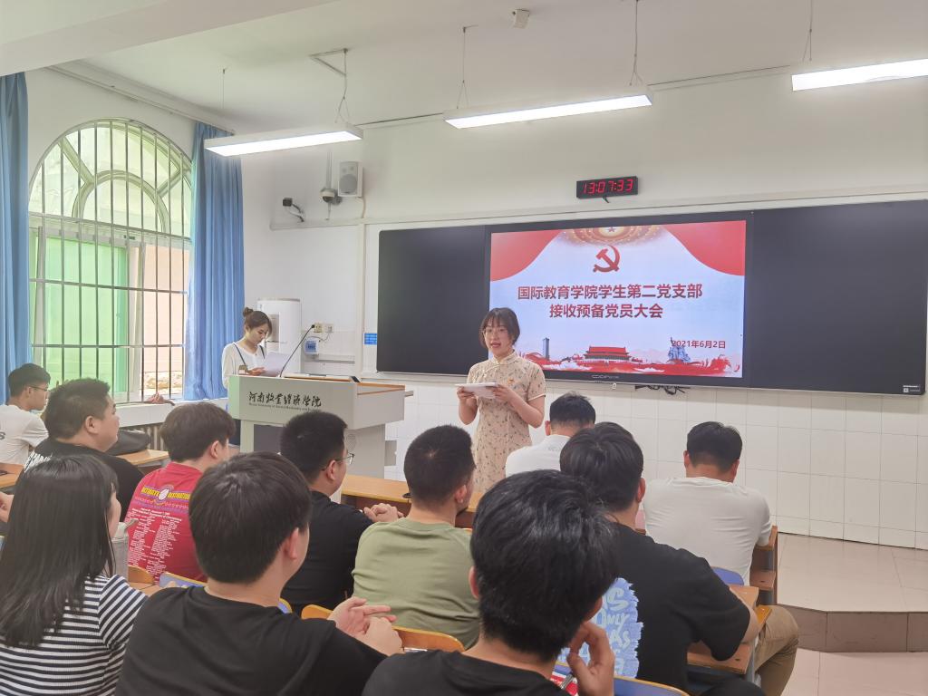 2021年6月2日中午12:30, 太阳成集团tyc33455于教学楼A104召开太阳成集团tyc33455学生第二党支部接受预备党员大会。参加本次会议的有学生第二党支部书记姬哲、党小组组长刘天宇和组织委员侯思琦。