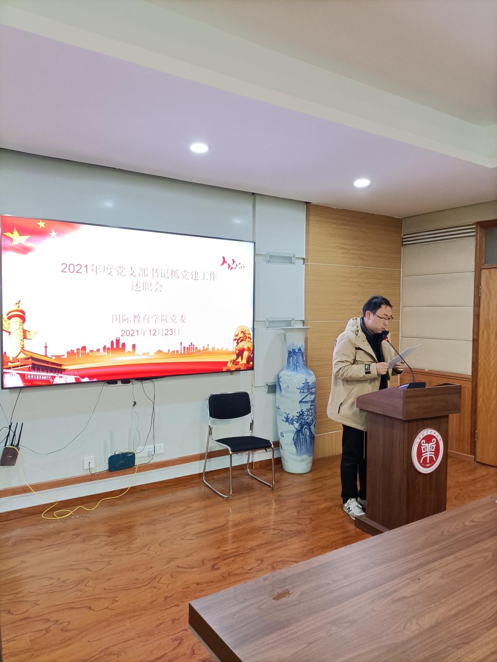 12月23日上午,太阳成集团tyc33455在教学办公楼113会议室召开2021年度党支部书记抓党建工作述职评议会。学院全体教工党员、部分学生党员代表参加会议。会议由院党委书记贾江主持。