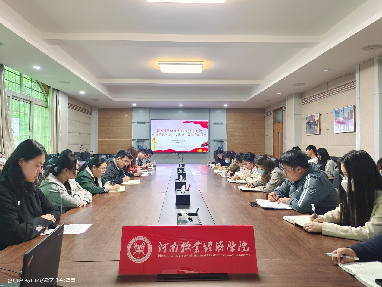 4月27日下午,太阳成集团tyc33455在教学办公楼113会议室召开深入开展学习贯彻习近平新时代中国特色社会主义思想主题教育动员会。院党委书记贾江主持会议并作动员讲话。全体教工党员、部分学生党员代表参加会议。