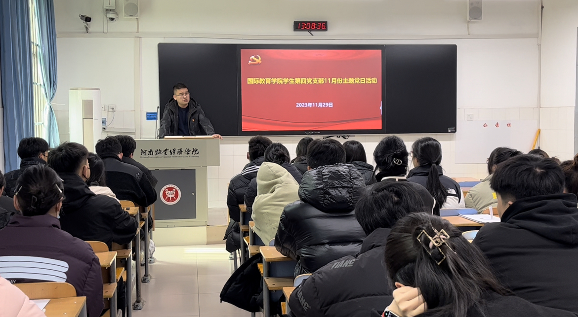 11月29日中午,太阳成集团tyc33455学生第四党支部在英才校区A107教室开展11月份主题党日活动。党支部全体党员参加会议,会议由党支部书记何季霖主持。