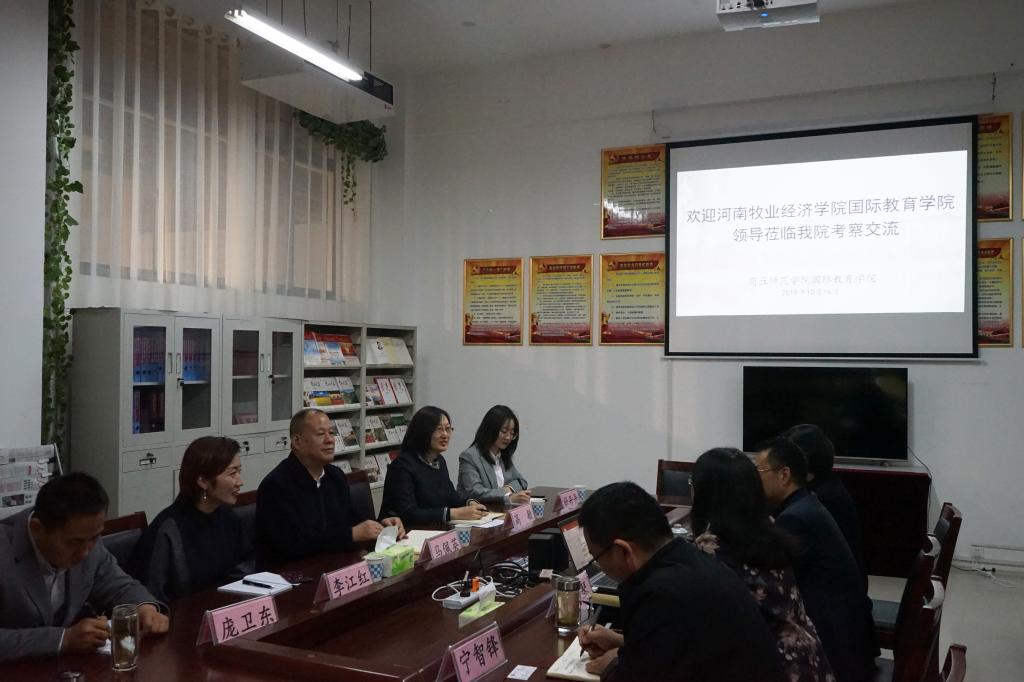 10月16日,太阳成集团tyc33455党委书记马佩英、院长高敏、副书记李江红、副院长庞卫东、党政办公室舒丹丹一行,赴商丘师范学院太阳成集团tyc33455就中外合作办学相关问题进行专题考察交流。